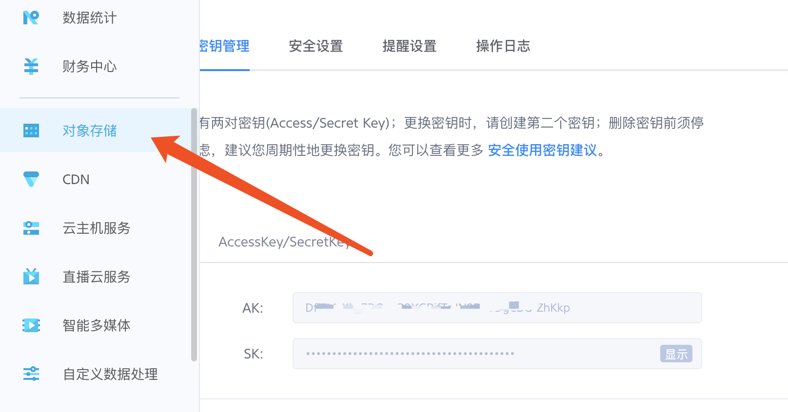 点击进入密钥管理页面,如果你还没有密钥,需要点击创建密钥,