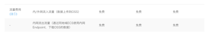 另外阿里云对上传是免费的,如下所示: